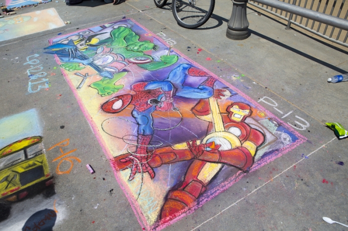 At Chalk the Walk, participants draw four by four foot chalk drawings. A theme guides artists each year. All Chalk the Walk participants are encouraged to incorporate the theme in their work!